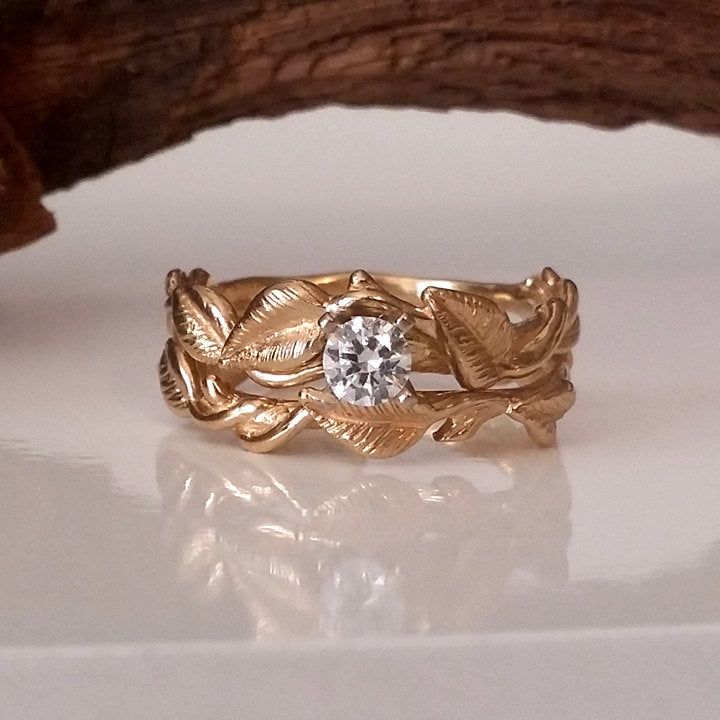 I hand sculpted this twig band with my signature leaf design using the lost wax method. This is a delicate organic wedding set. The vine wraps around the twig giving the ring additional depth. This band has a 360 degree design and each ring is made in your size creating a one of a kind set.