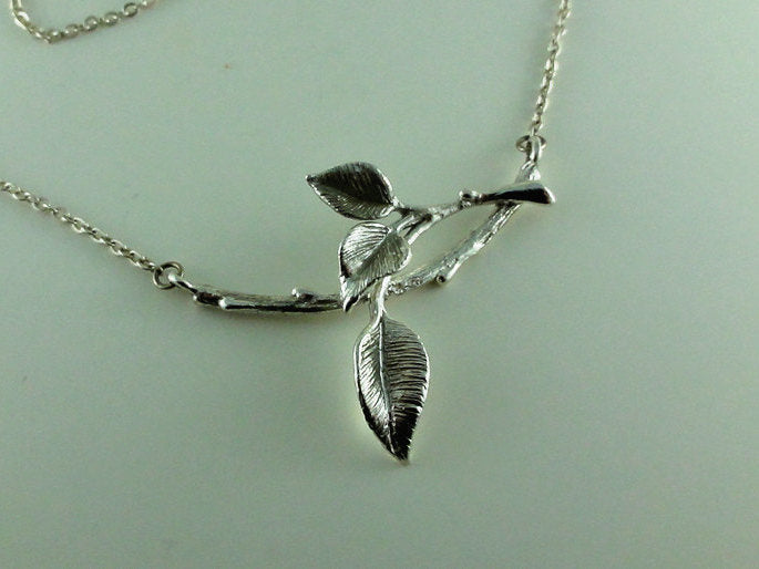 Hand sculpted Sterling Silver Twig with Buds and three leaves perfectly balanced.
