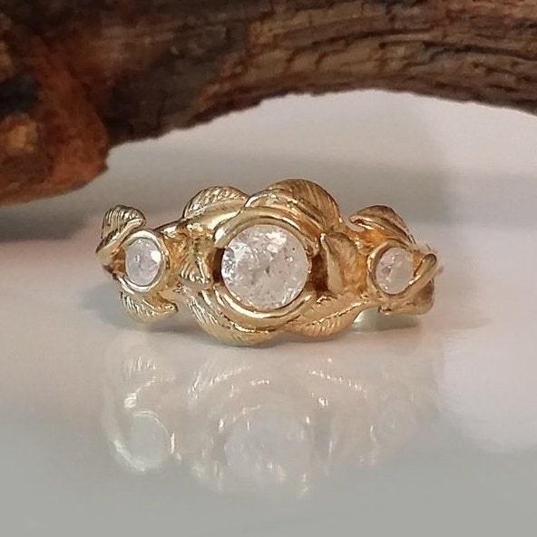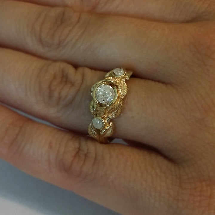 Please NOTE: The completed ring in photos has already sold. This listing is to create your own Leaf & Twig Engagement ring similar to the one shown in your choice of 14k gold or 18k Gold with a wide variety of diamonds, including Moissanite or Gemstones. Platinum is available, please message me for price.