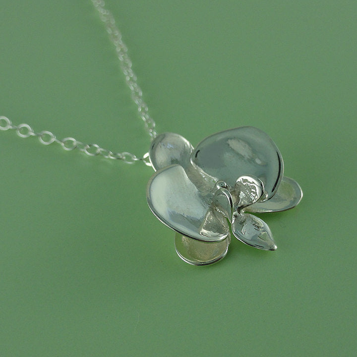 Each one of my hand sculpted Phalaenopsis Orchids are cast in sterling silver and then highly polished.