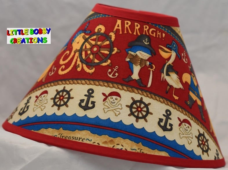 CAN'T FIND THAT PERFECT LAMP SHADE PRINT OR SIZE? We offer over 15,000 fabric selections. To include OVER 75 PIRATE THEMED lamp shade fabric choices. In addition we offer 35 trim color options at www.LITTLEBOBBYCREATIONS.com.