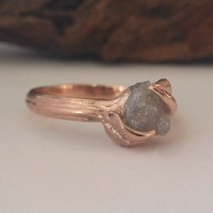 Hand Sculpted 14k Rose Gold Leaf & Twig Engagement Ring are all One-of-a-Kind Rings each hand sculpted by me.