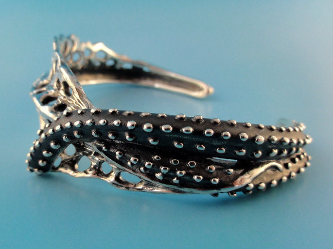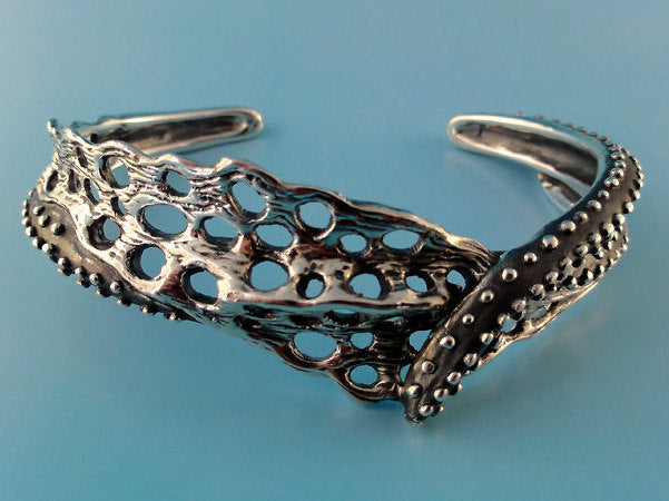 Made up of two Starfish Tentacles with Fan Coral laying between the two fingers that has fused itself into one of the tentacles. Weird but Cool! Wish you could see the detail! This is my first smaller sculpted cuff to go with my Fusion Collection. Extremely Detailed!