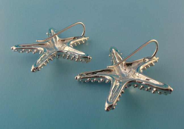 I placed the ear wires on the back as if the starfish is hanging by one arm which I feel gives this starfish earring an elegant look which is the same look I gave the starfish post earrings.