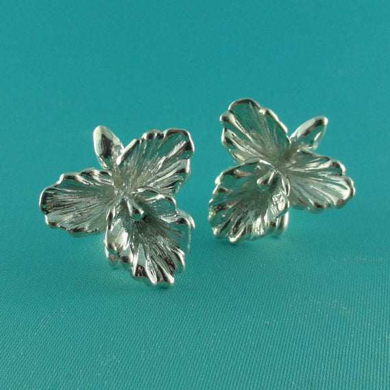 Sterling Silver Orchid Earrings 3/8" x 3/8"