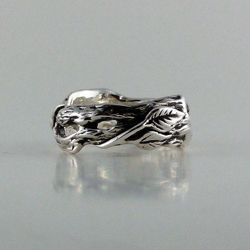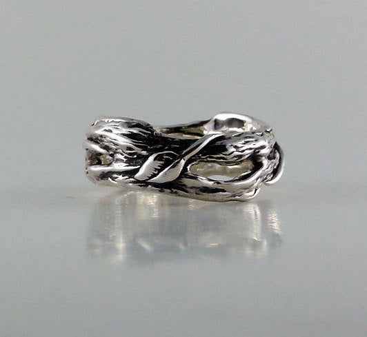 Hand sculpted twig band with 3-6 leaves, Continuous 360 design.