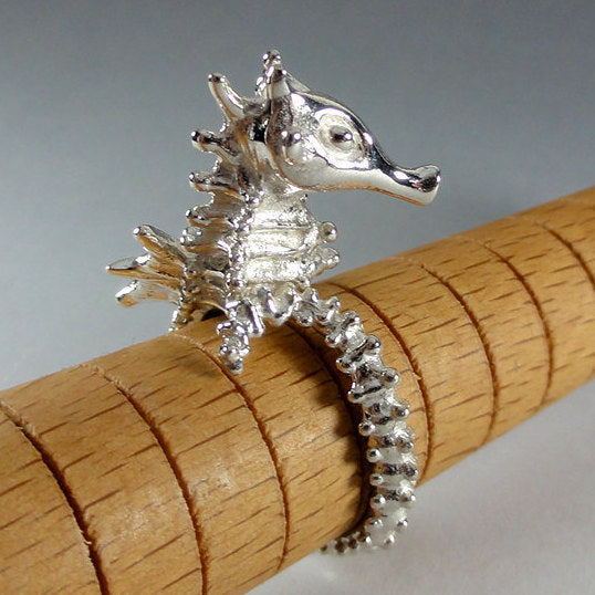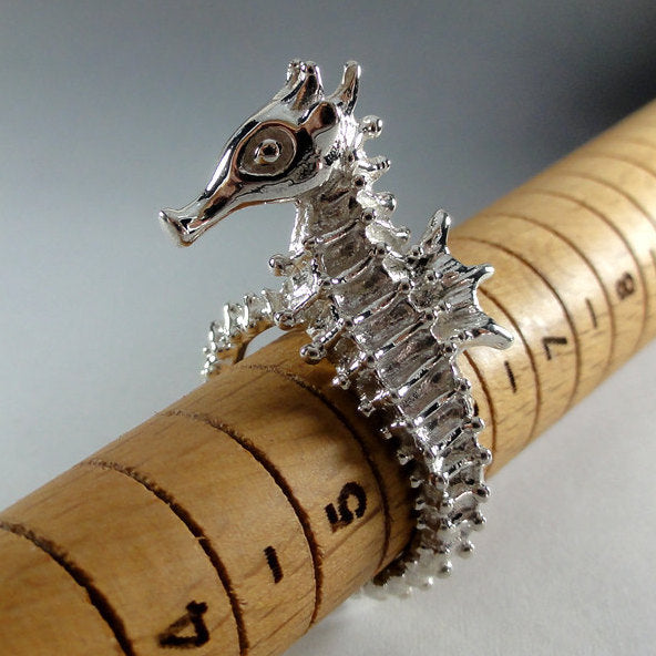 He is adjustable but I will need your ring size so that I can make sure he comes to you, ready to wear. His long tail will wrap around your finger and curls up at the end.