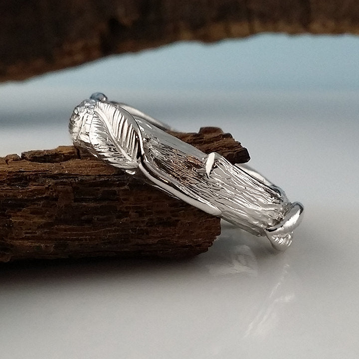 Design: Hand sculpted branch texture, leaves and tiny knots.