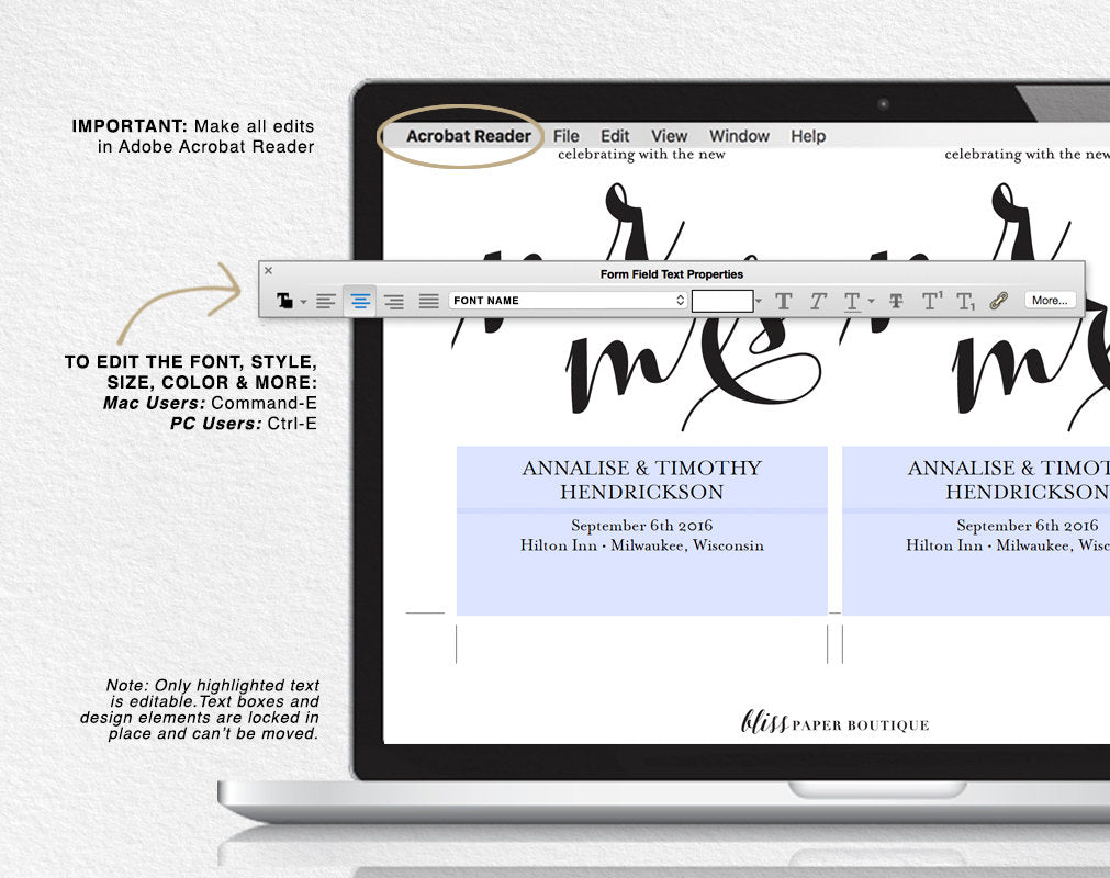 �� Copyright of Bliss Paper Boutique. For personal use ONLY —�no part of any content, description or template may be reproduced or sold in any form.
