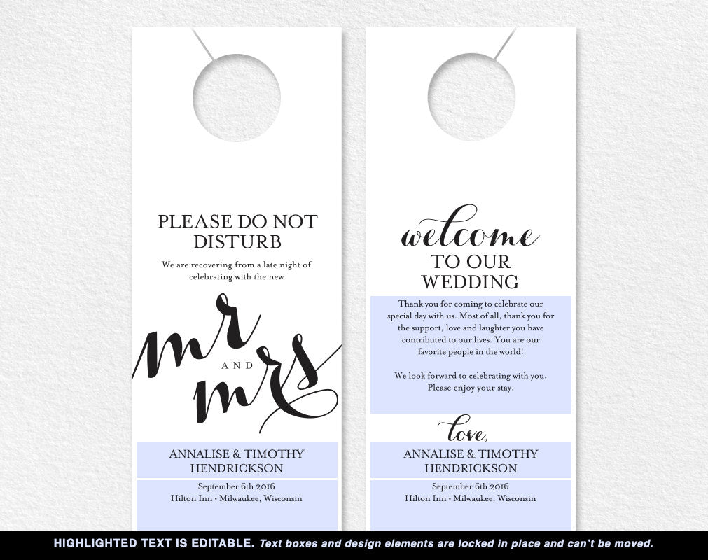 - Only highlighted text is editable. Text boxes & design elements are locked.